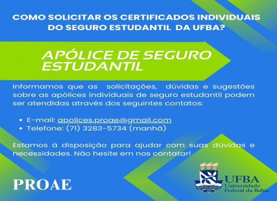 COMO SOLICITAR OS CERTIFICADOS INDIVIDUAIS DO SEGURO ESTUDANTIL DA UFBA?