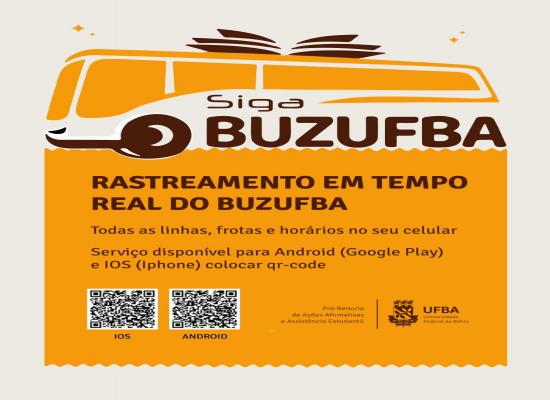 Acompanhe em tempo real o transporte intercampi da UFBA com o novo aplicativo Siga o Buzufba, disponível para iOS e Android.